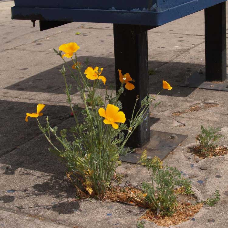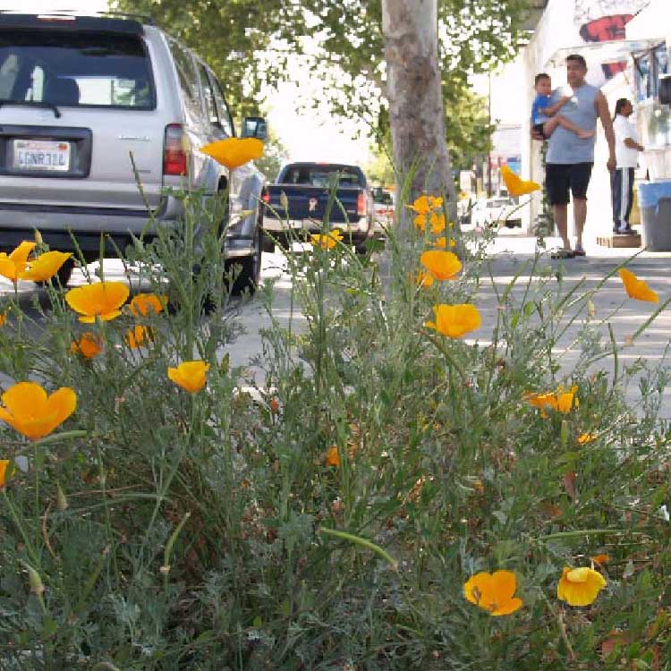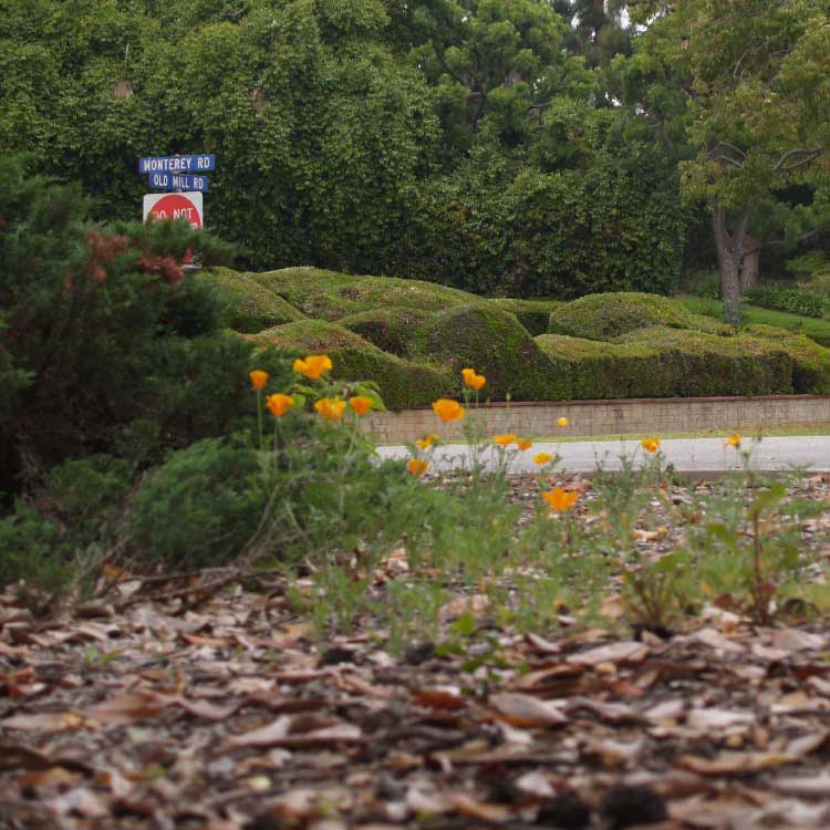 EVERYTHING IS STILL ALIVE (2007-10) was a planting of native poppies on patches of bare ground through adjacent neighborhoods of different cultural and economic classes: working class Highland Park, comfortable South Pasadena, and the estate community of San Marino.